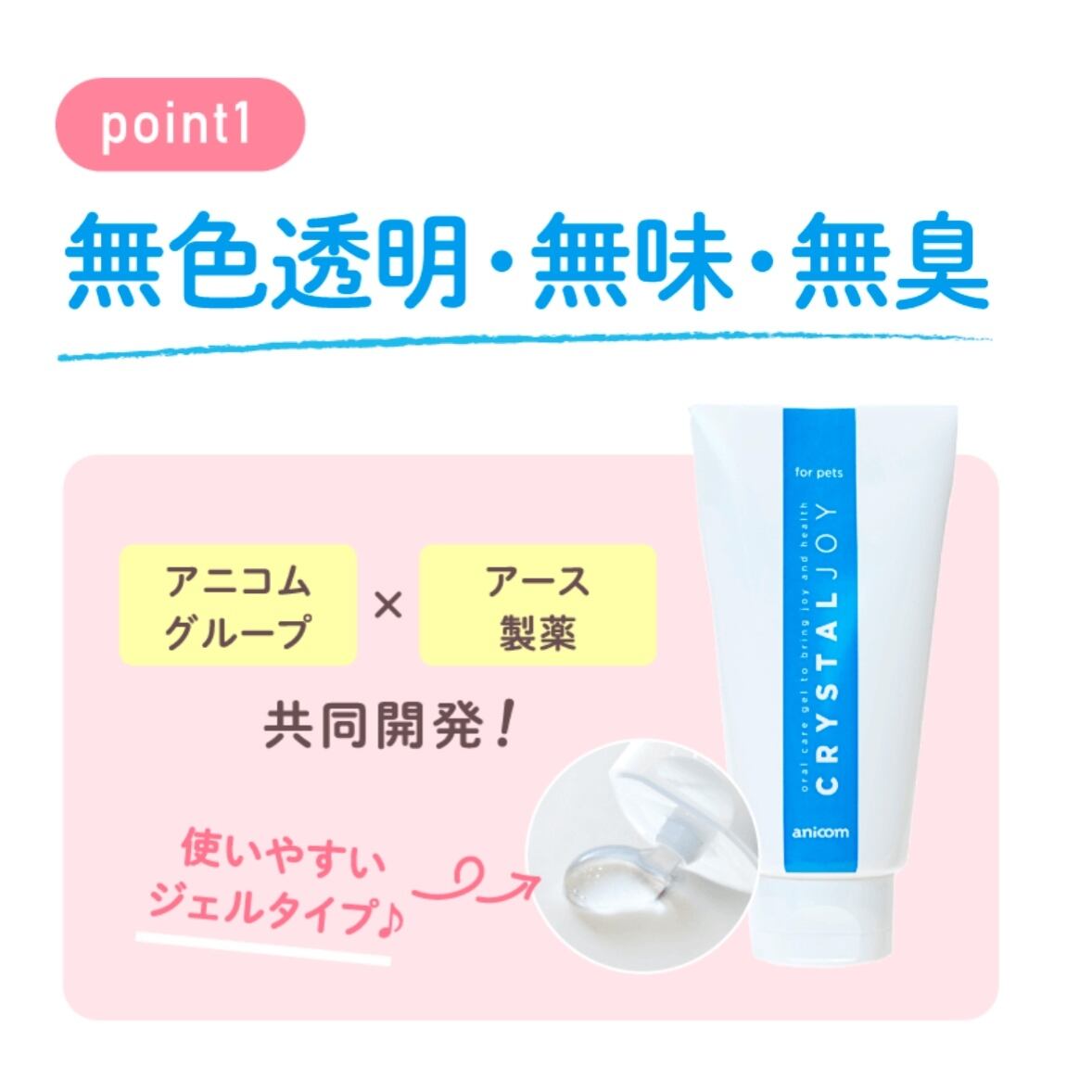 ※アニコム損保がご契約者向けに募集した「CRYSTAL JOY」無料モニターに対するアンケート結果を元に算出。「CRYSTAL JOY」使用初日と2週間後の口臭軽減に関するアンケート調査(とても減った・減った・やや減ったと選択した人の合計が約74%(n-339))【2024年8月23日時点】